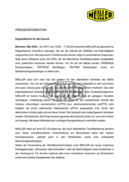 Presseinformation Kippaufbauten für die Zukunft-IFAT2024